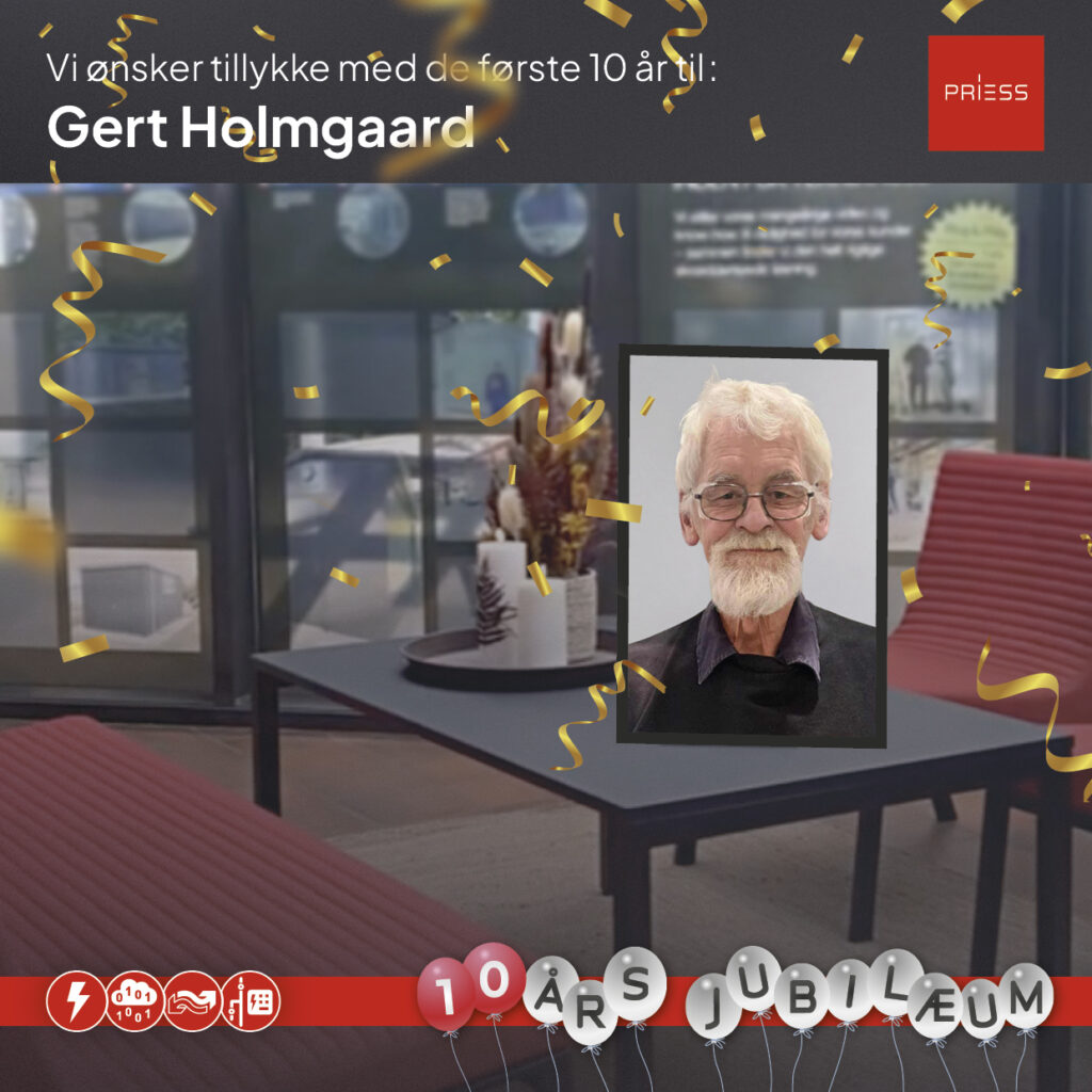 Vi er stolte af at have dig på holdet, Gert – og vi glæder os over, at du har lyst til at blive hos Priess helt frem til pensionen.