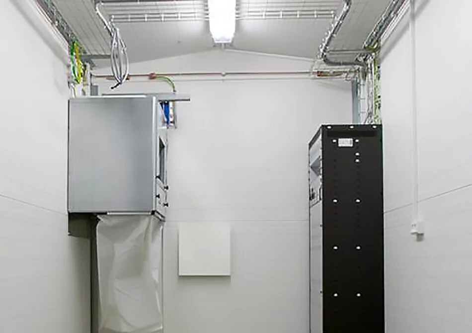 Shelters fra Priess Digital Infrastructure A/S til Telecom-branchen kan etableres med forskellige former for ventilation. Det sikrer, at der opretholdes et optimalt miljø på trods af udendørs temperaturvariationer og den varme, som det aktive udstyr genererer.