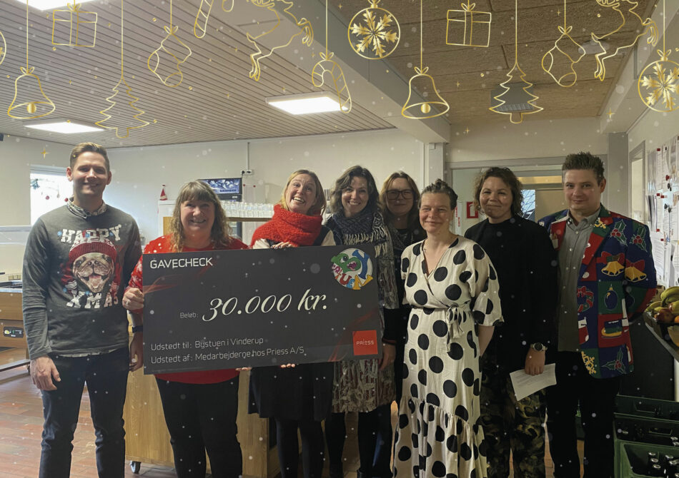 Hele 30.000 kr. blev det til, som personaleforeningen stolt kunne overrække. Alle medarbejdere hos Priess glædes over, at vi alle er med til at støtte op omkring det gode arbejde Bystuen yder til lokalområdet, hver eneste dag.